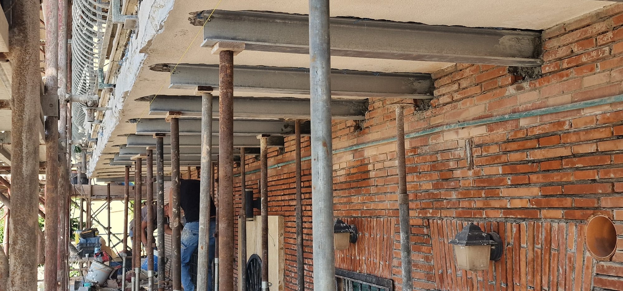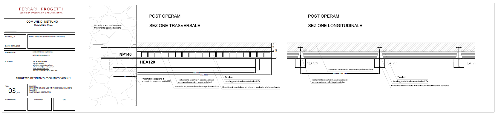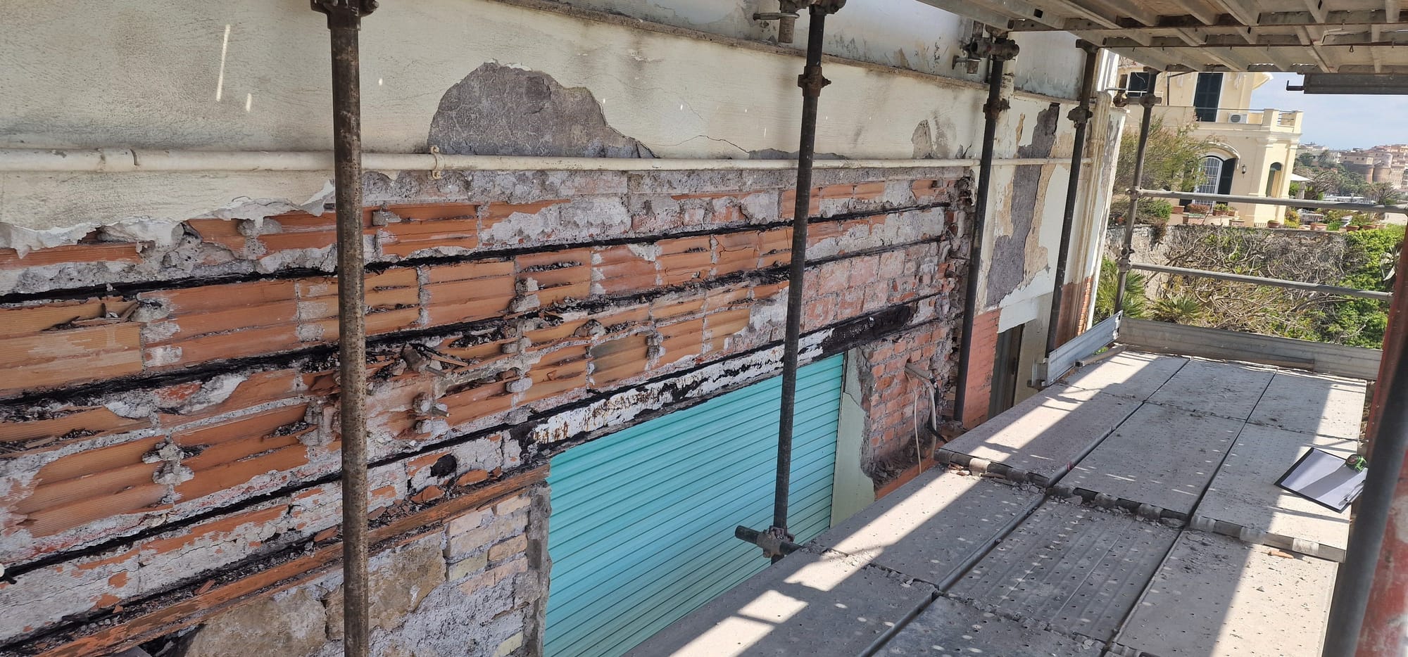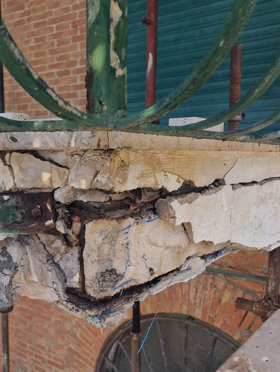 Gli interventi eseguiti nel tempo di risanamento superficiale dei balconi avevano in prima analisi fatto escludere la necessità di un consolidamento pesante sugli stessi, "mascherando il reale stato degli elementi in acciaio portanti.