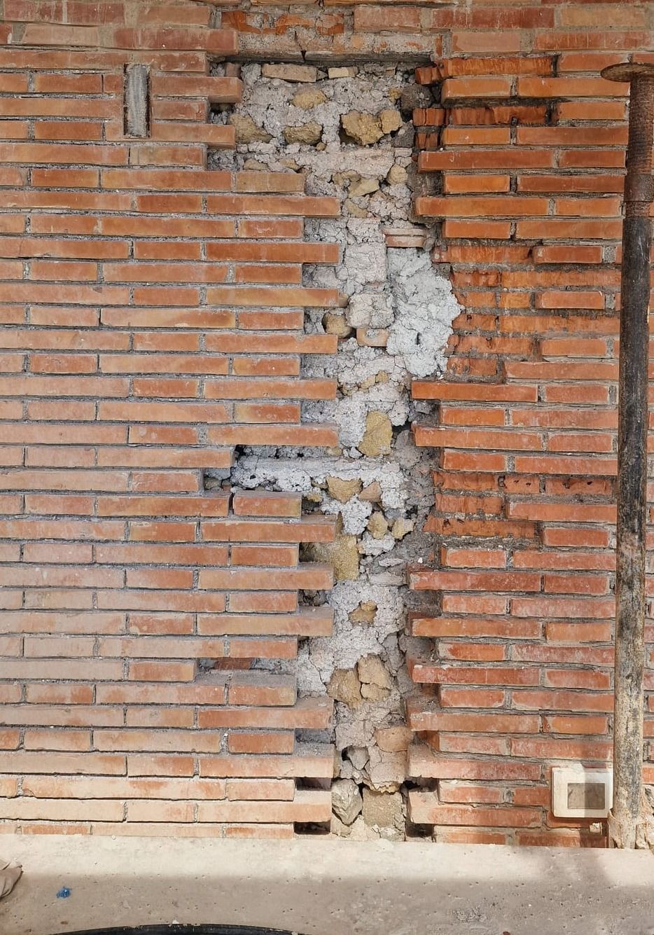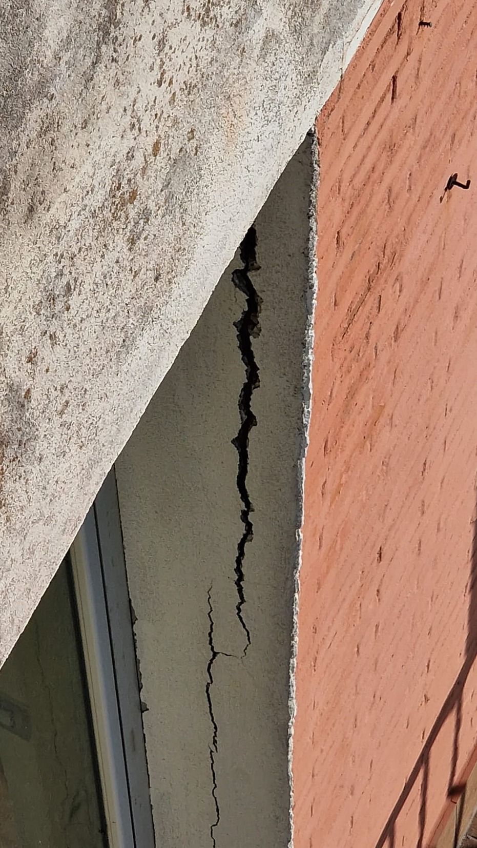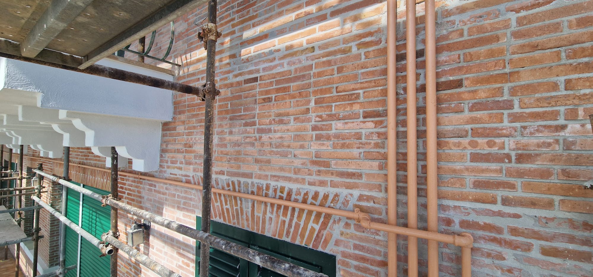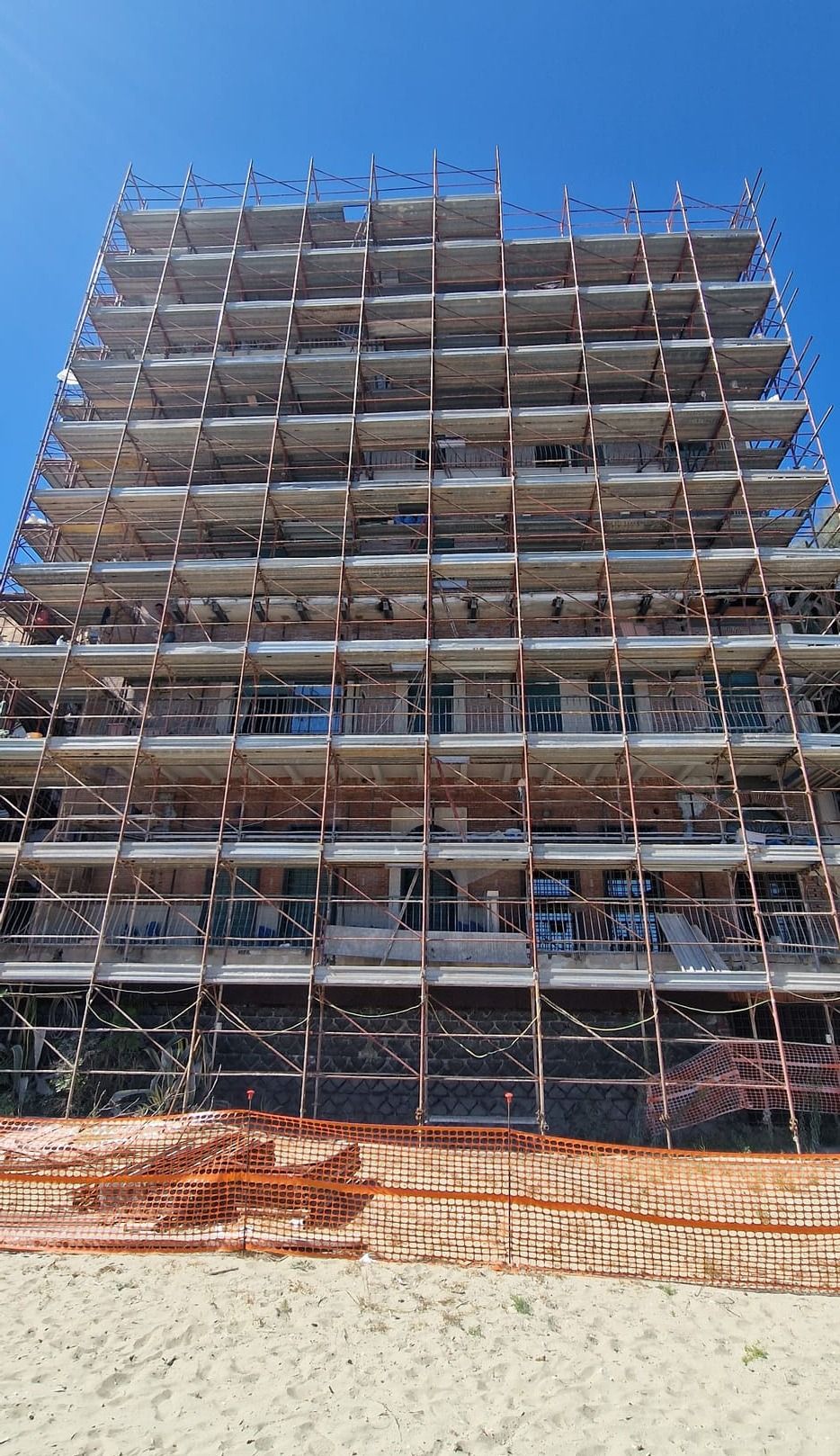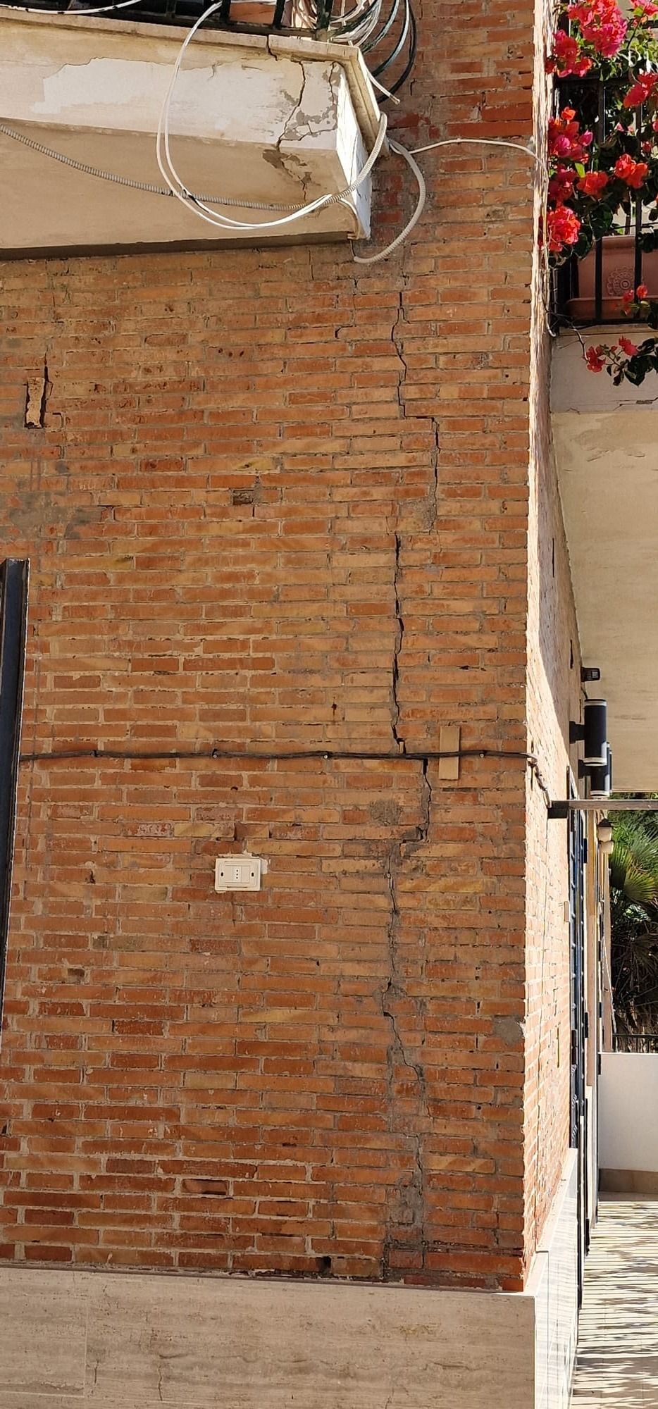 La cortina a faccia vista risultava degradata in più zone con pericolo di caduta di materiale dall'alto