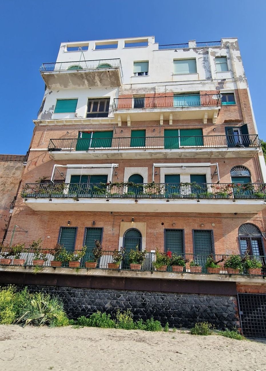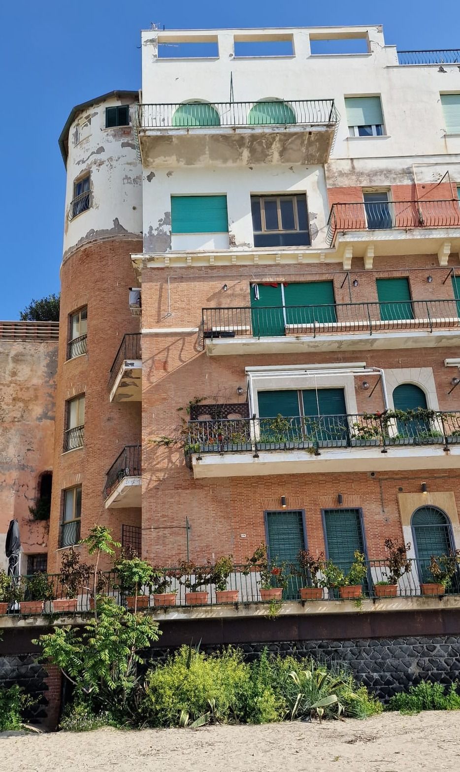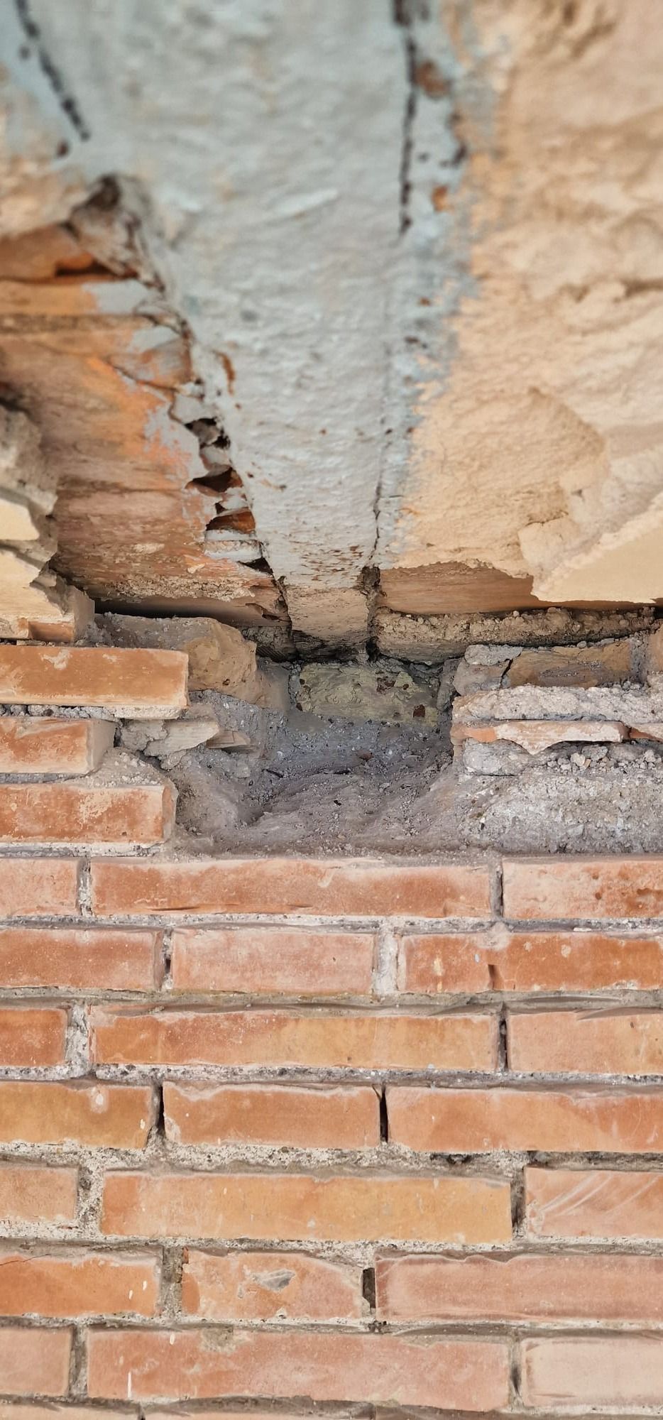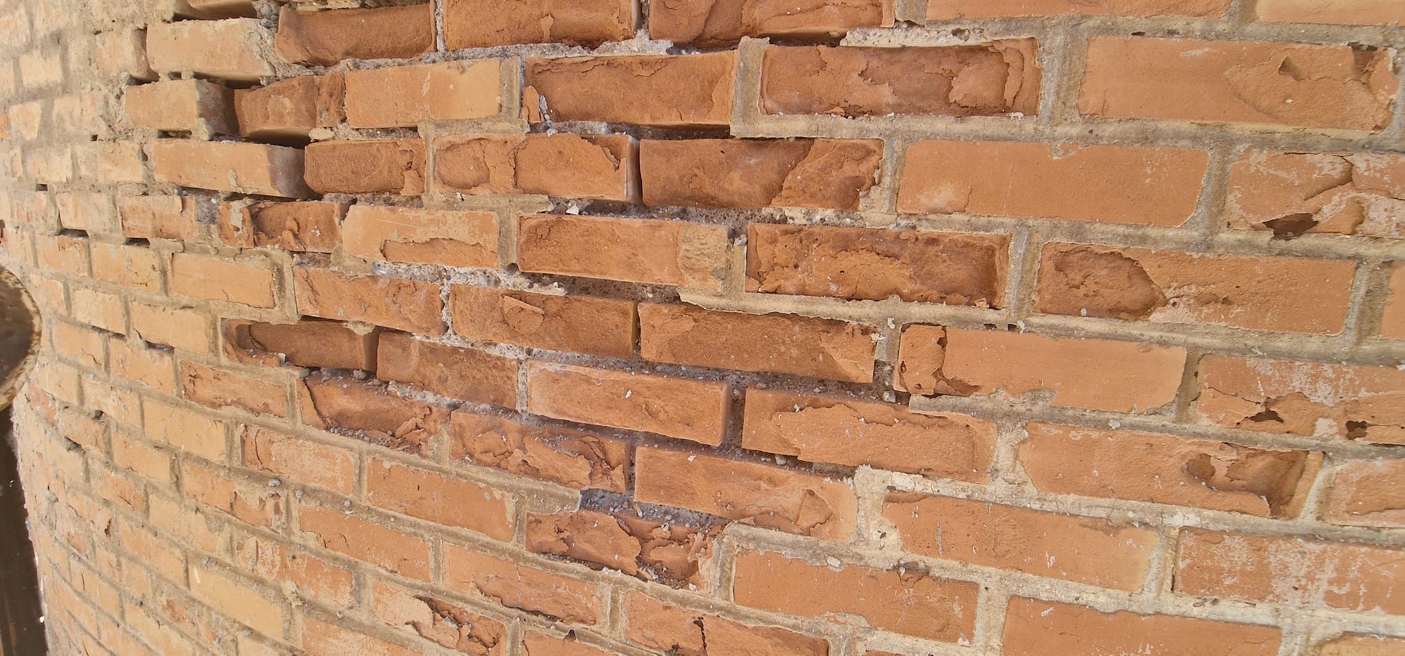 La cortina a faccia vista risultava degradata in più zone con pericolo di caduta di materiale dall'alto