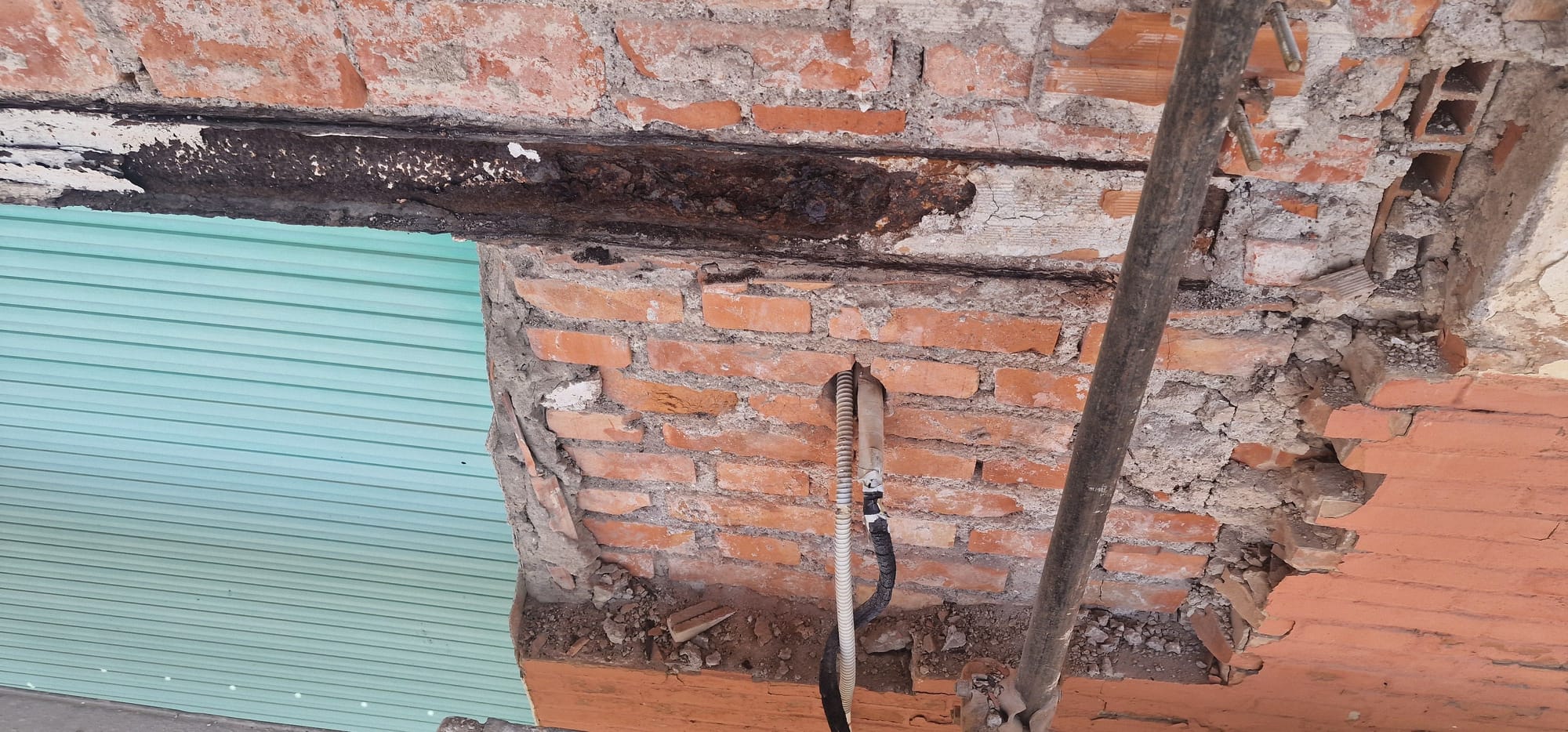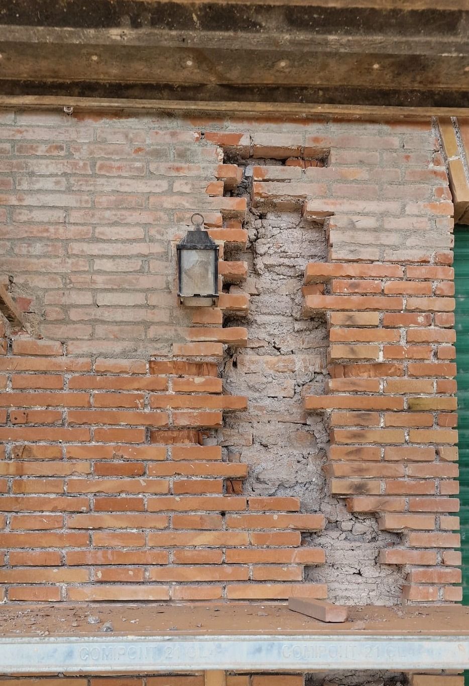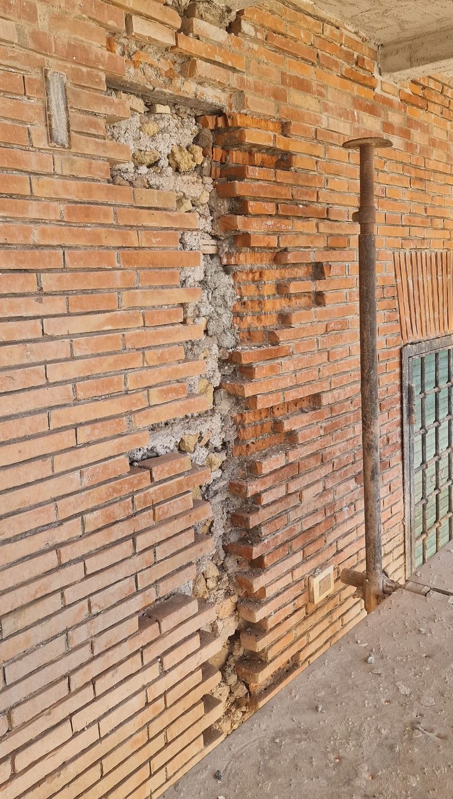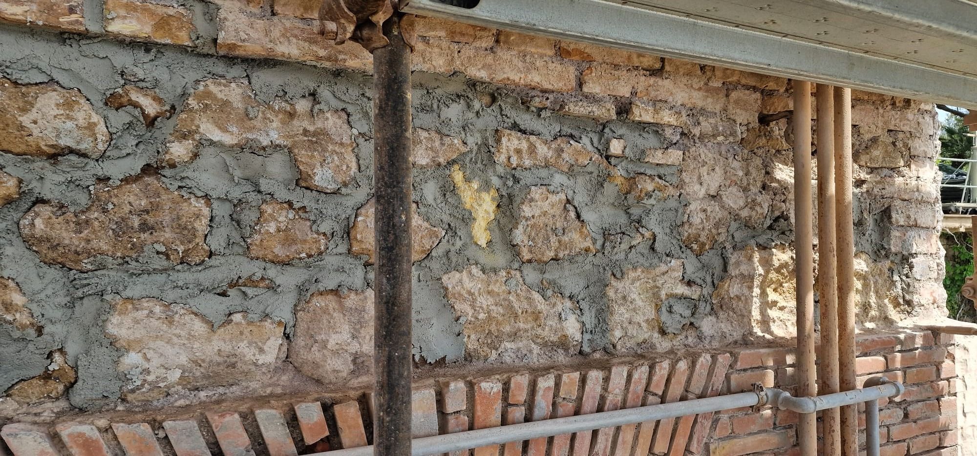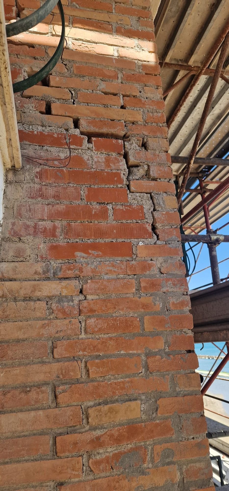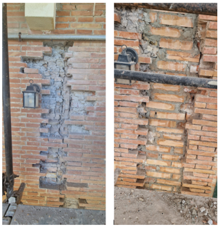 In alcuni punti della facciata era evidente il ribaltamento del paramento in cortina fuori dal piano. Specifici sondaggi e approfondimenti in corso d'opera hanno permesso di determinarne le cause e trovare adeguate soluzioni progettuali.