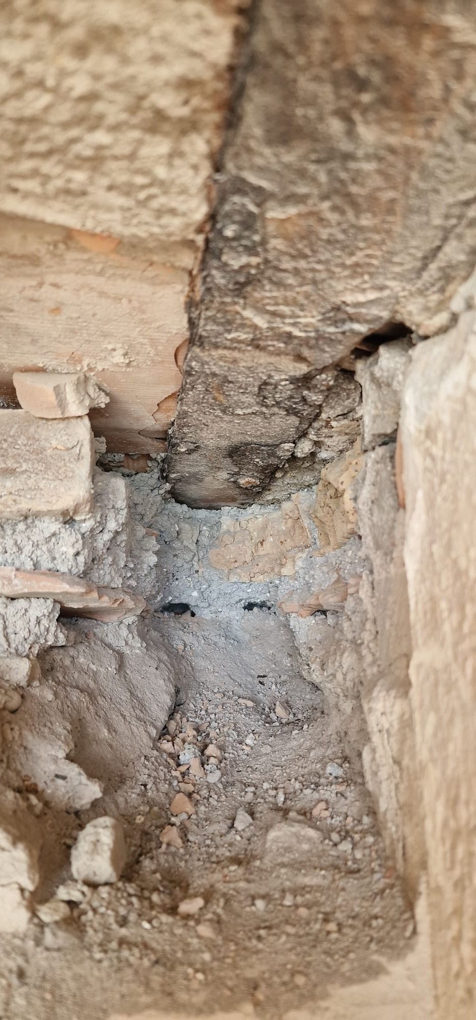 Dopo la visione ravvicinata e una spicconatura locale è emerso un quadro allarmante con un avanzato stato di degrado del materiale.